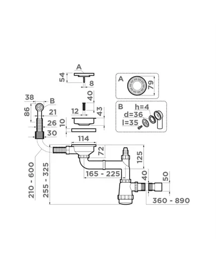 Арматура для одночашевых моек с круглым переливом Omoikiri WK-1-R-AB022
