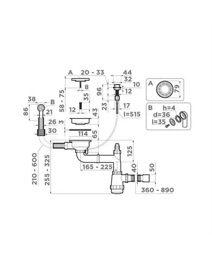- Арматура с клапаном-автоматом для одночашевых моек с круглым переливом.