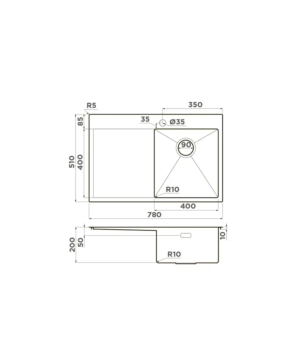 Размер мойки,мм