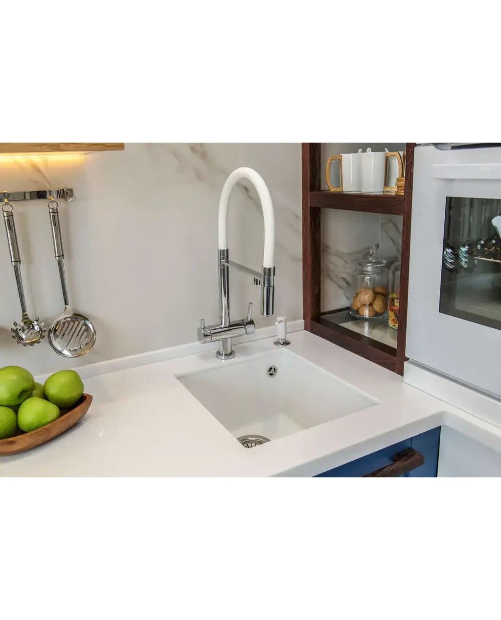 • Благодаря этому элементу мойка обретает устойчивость к воздействию различных кислот и щелочей, что гарантирует ее неизменный внешний вид.