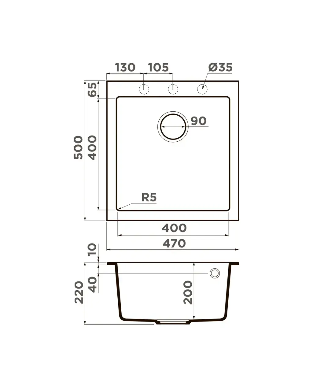 Размер мойки,мм