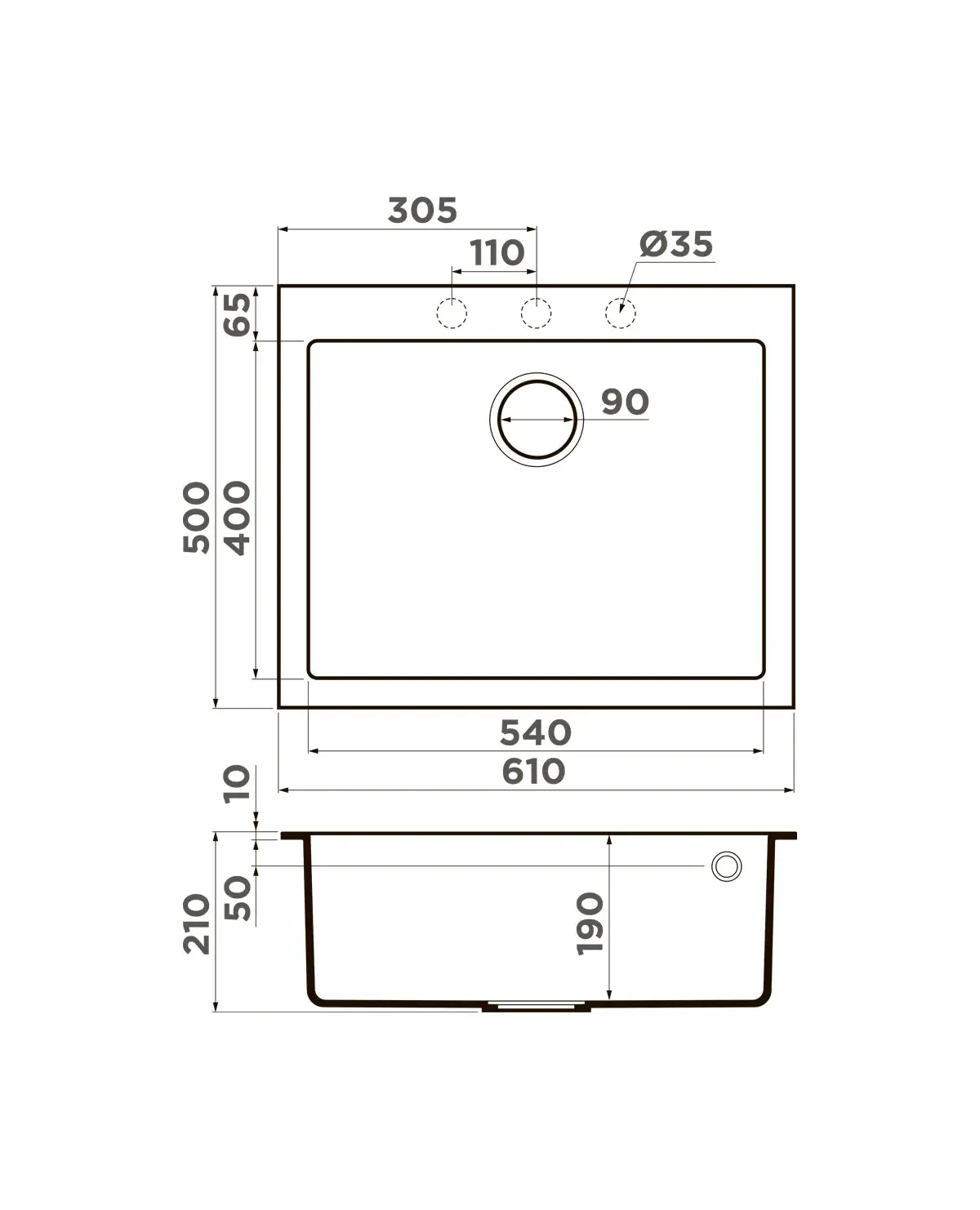 Размер мойки,мм