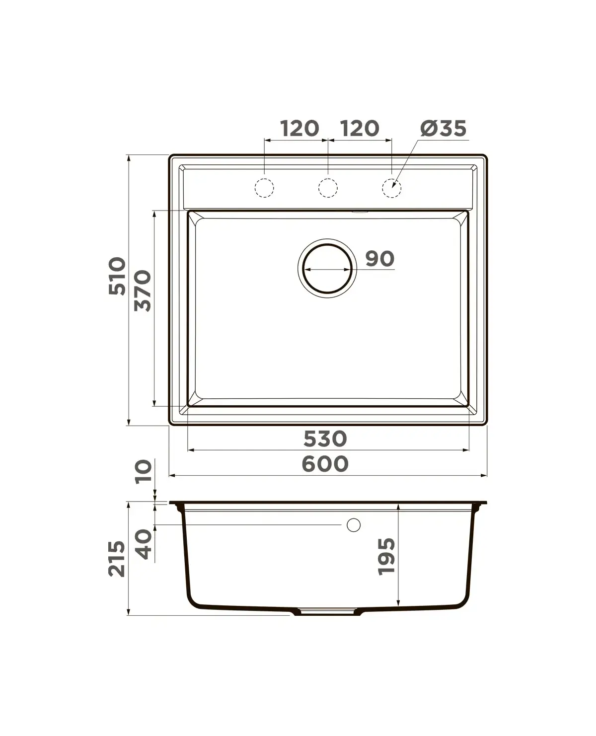 БрендOmoikiri МатериалArtgranit Размер мойки,мм600х510 Вес нетто10,5 Размер чаши,мм530x370 Размер монтажной тумбы,см60 см Тип монтажаНакладной Высота упаковки280 Длина упаковки680 Ширина упаковки595 ЦветEspresso Гарантия 8 лет