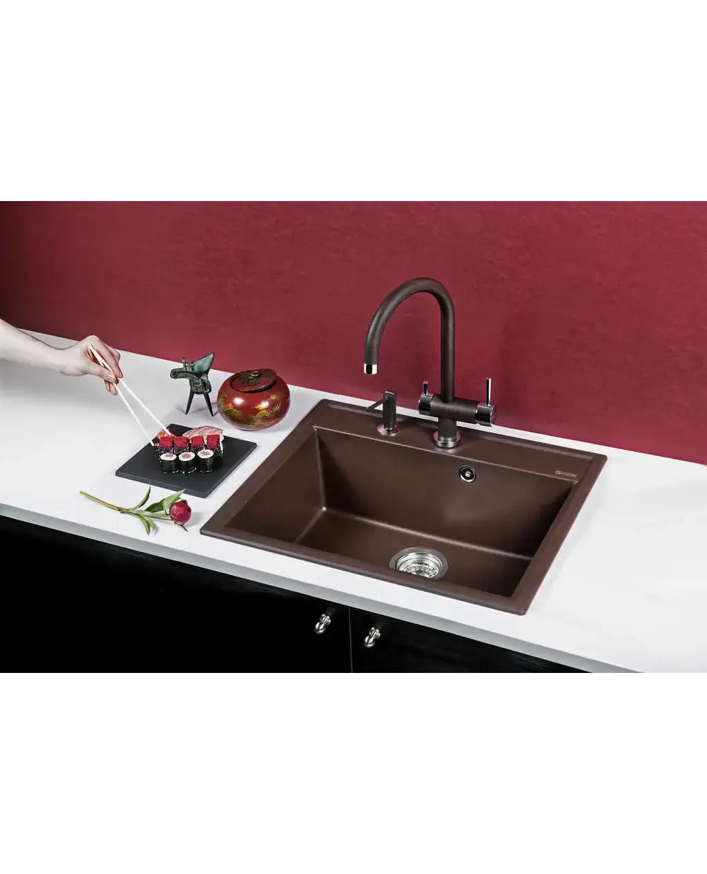 - Составляющим наполнителем моек ARTGRANIT является молотый кварц, который обладает непревзойденной прочностью.