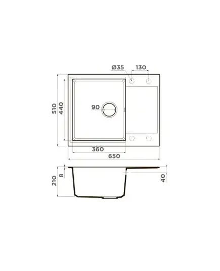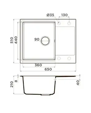 • Габариты мойки 650х510 мм — комфорт для широких столешниц.