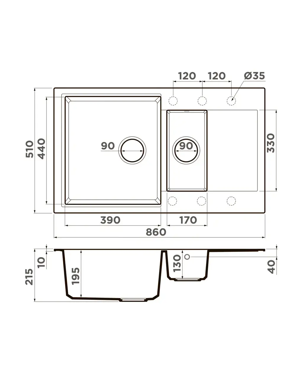 Размер мойки,мм