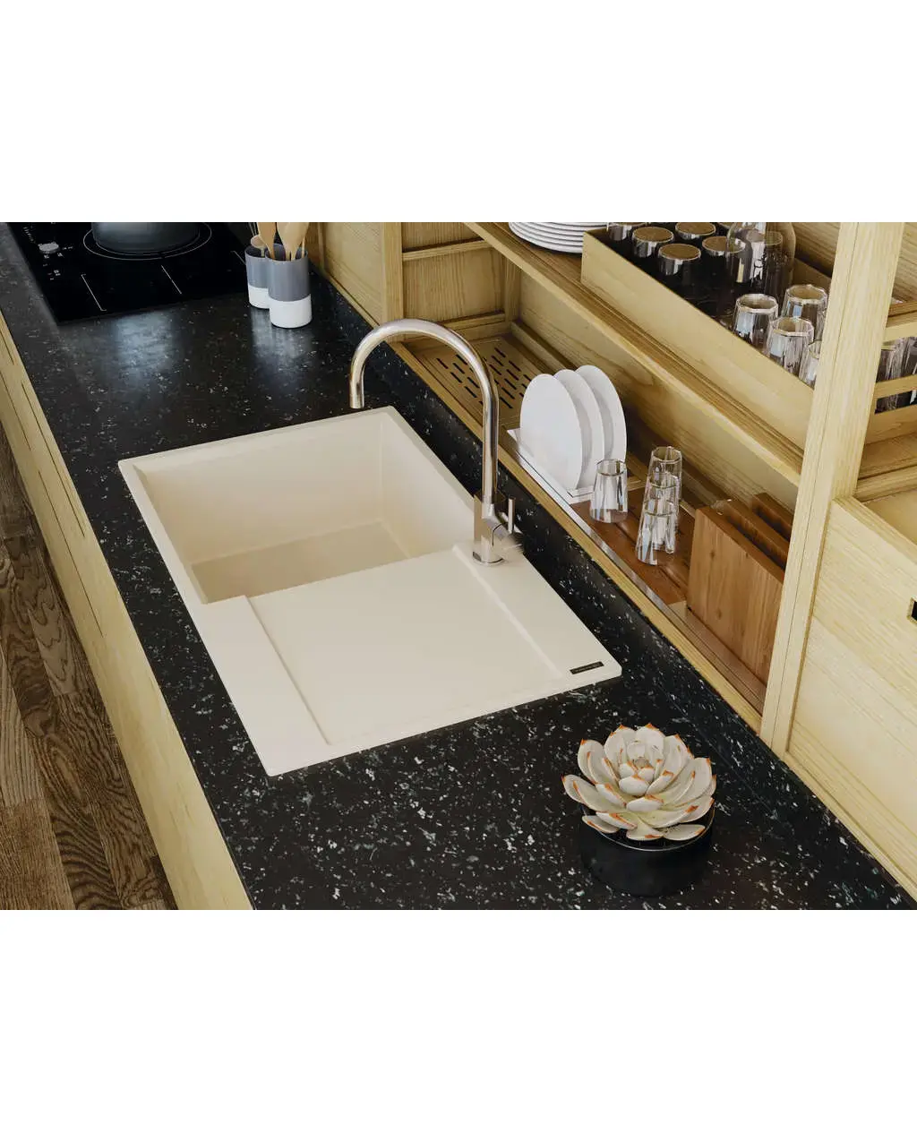 • Составляющим наполнителем моек ARTGRANIT является молотый кварц, который обладает непревзойденной прочностью.