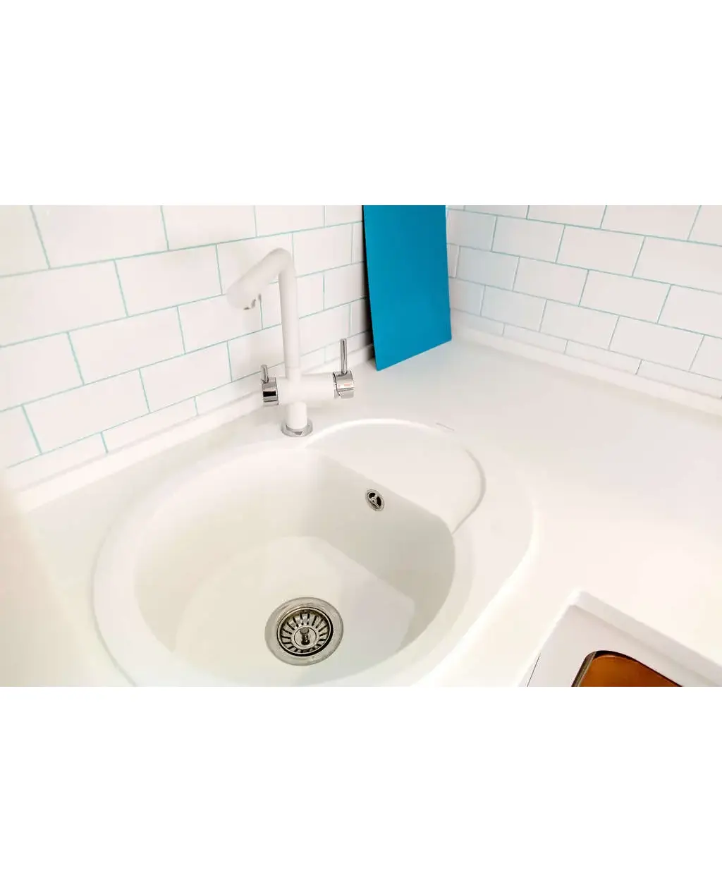 • Благодаря этому элементу мойка обретает устойчивость к воздействию различных кислот и щелочей, что гарантирует ее неизменный внешний вид.