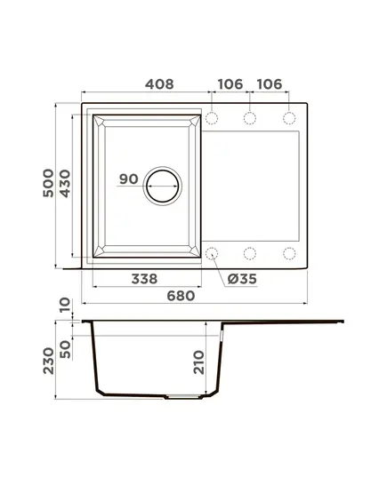 • Благодаря этому элементу мойка обретает устойчивость к воздействию различных кислот и щелочей, что гарантирует ее неизменный внешний вид.