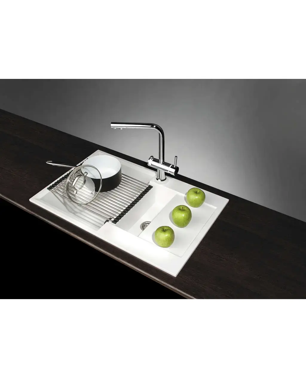 • Благодаря этому элементу мойка обретает устойчивость к воздействию различных кислот и щелочей, что гарантирует ее неизменный внешний вид.