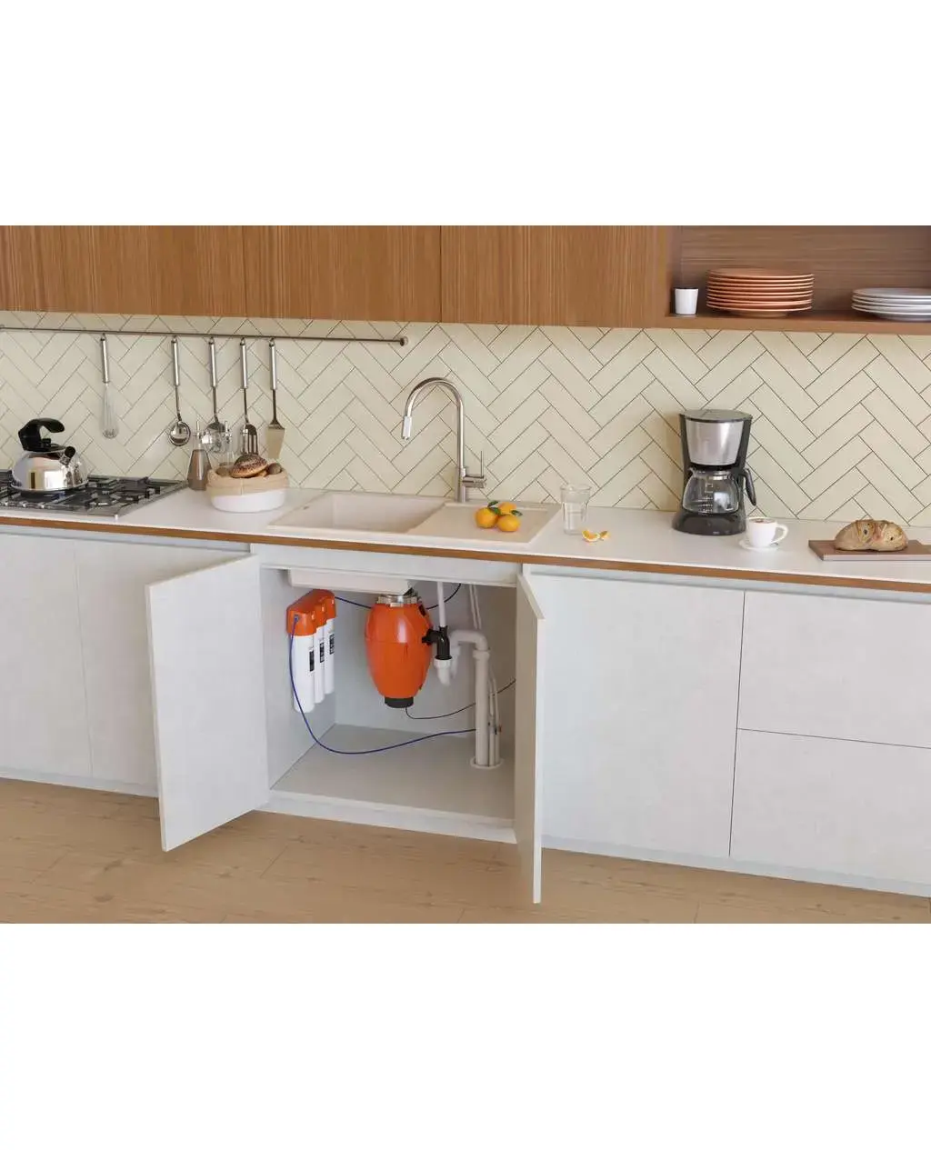 • Не храните открытые контейнеры с чистящими средствами или химикатами под мойкой.