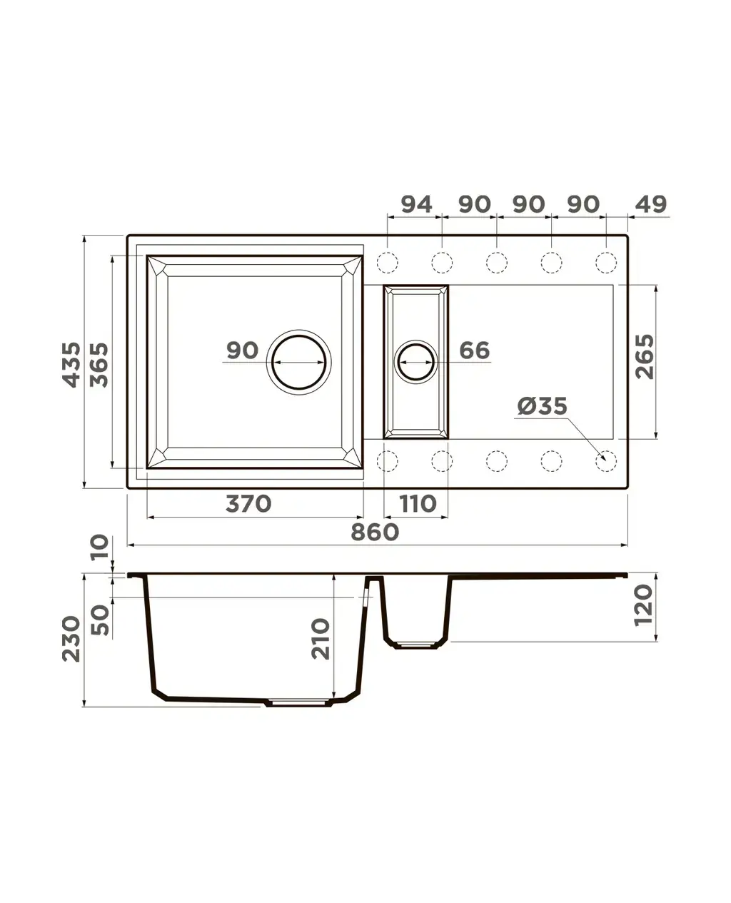 БрендOmoikiri МатериалTetogranit Размер мойки,мм860х435 Вес нетто10,86 Размер чаши,мм370x365 Тип монтажаНакладной Расположение чашиОборачиваемая Высота упаковки300 Длина упаковки940 Ширина упаковки570 ЦветЧерный Гарантия 15 лет