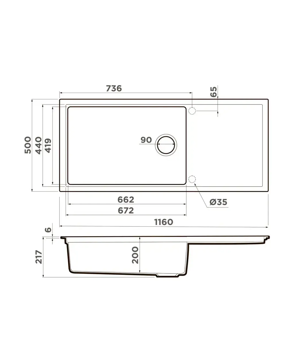 Размер мойки,мм