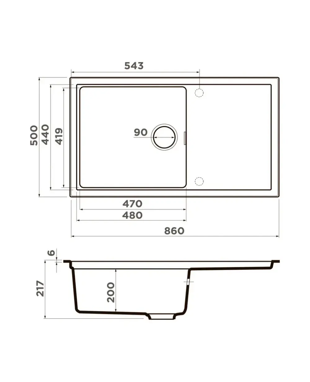 Размер мойки,мм