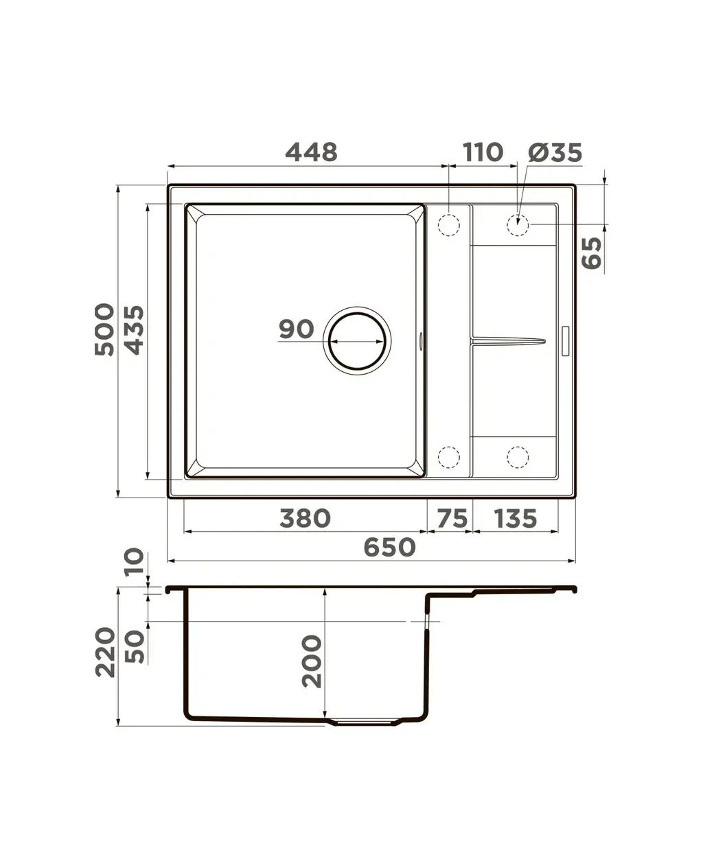 Размер мойки,мм