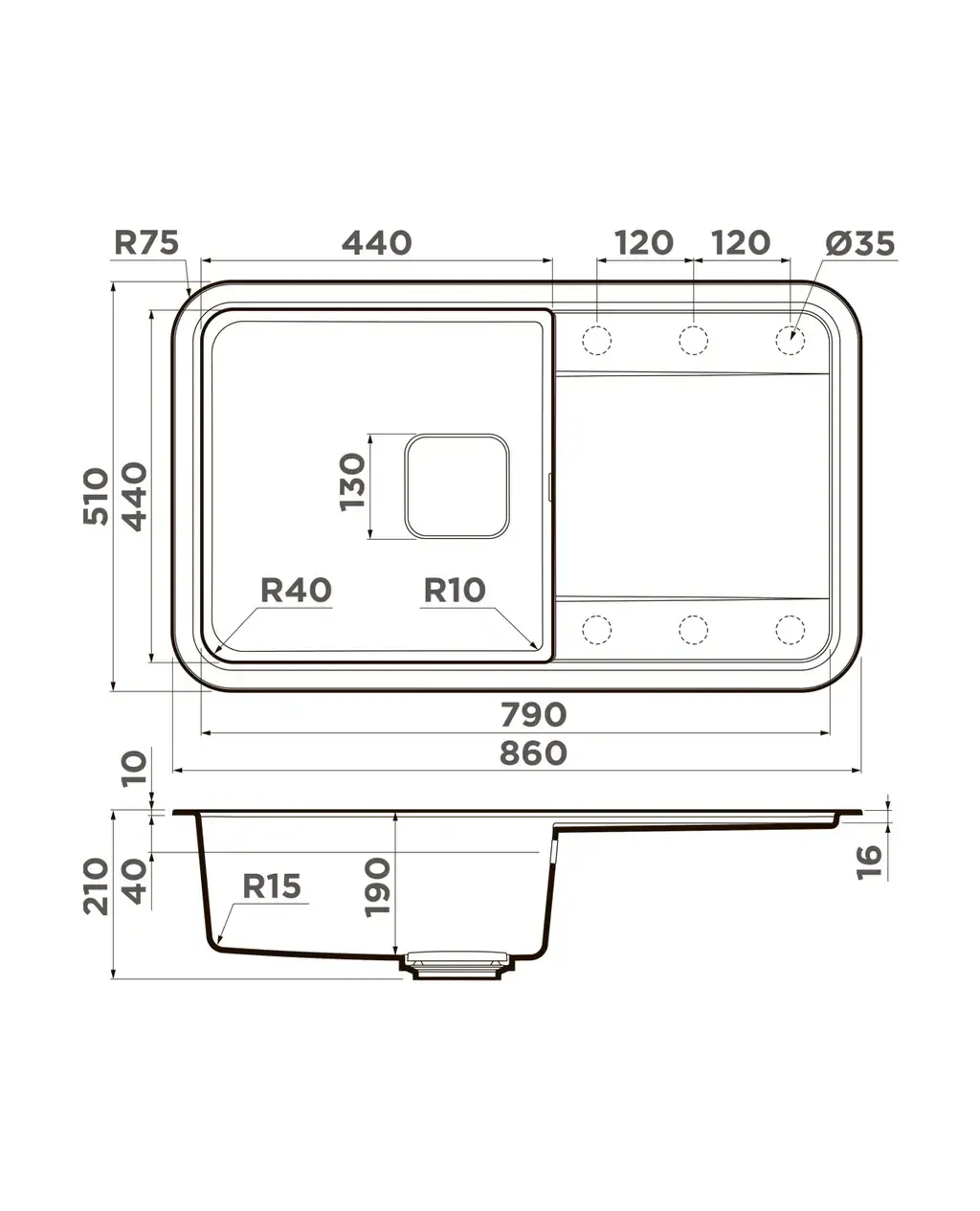 Размер мойки,мм