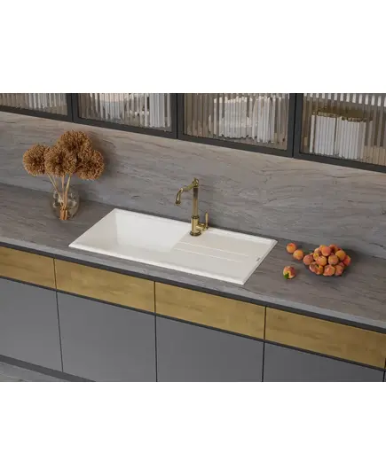 БрендOmoikiri МатериалTetogranit Размер мойки,мм1000х510 Вес нетто14,4 Размер чаши,мм478х421 Тип монтажаНакладной Расположение чашиОборачиваемая ЦветБелый Гарантия 15 лет