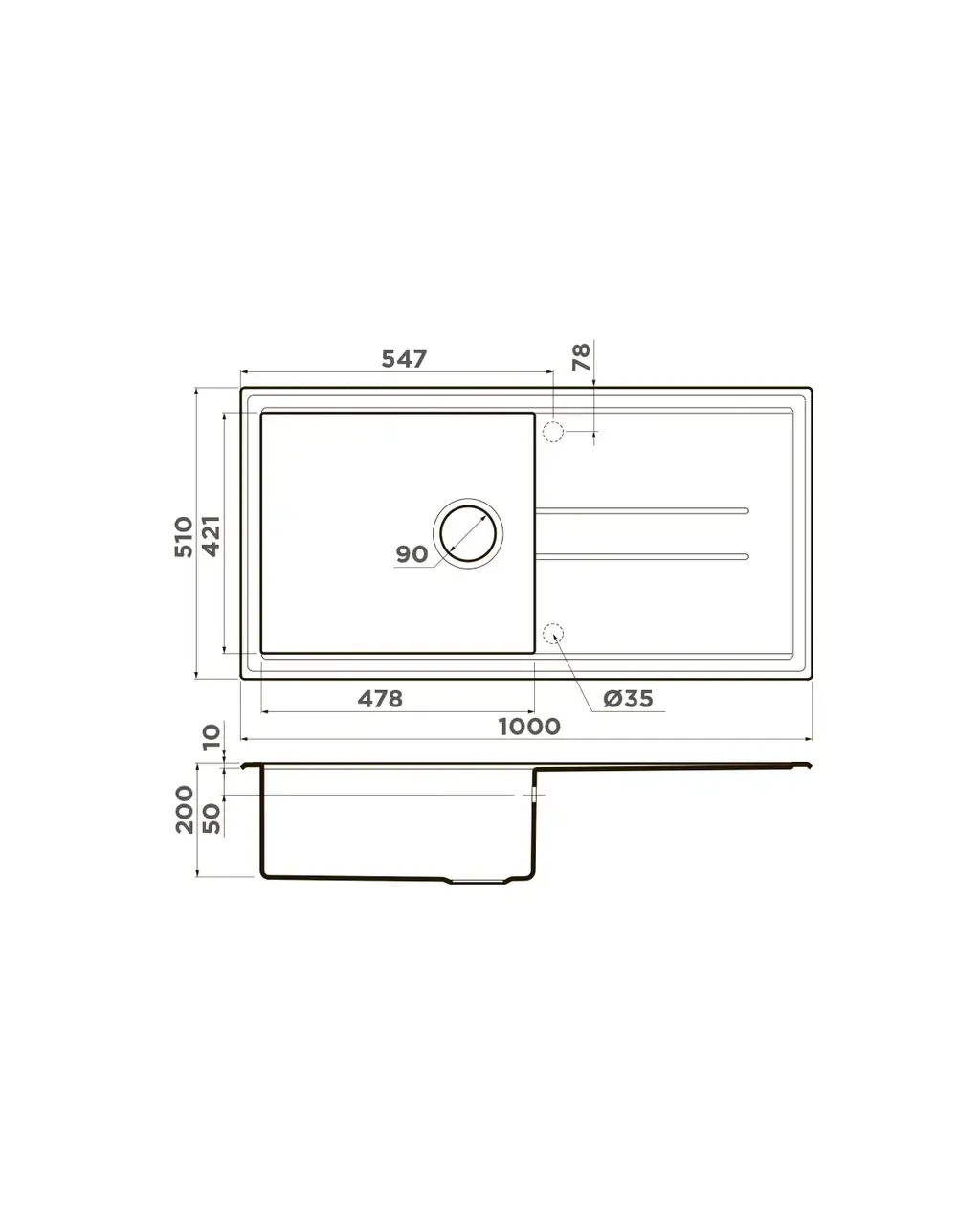 • Благодаря этому элементу мойка обретает устойчивость к воздействию различных кислот и щелочей, что гарантирует ее неизменный внешний вид.