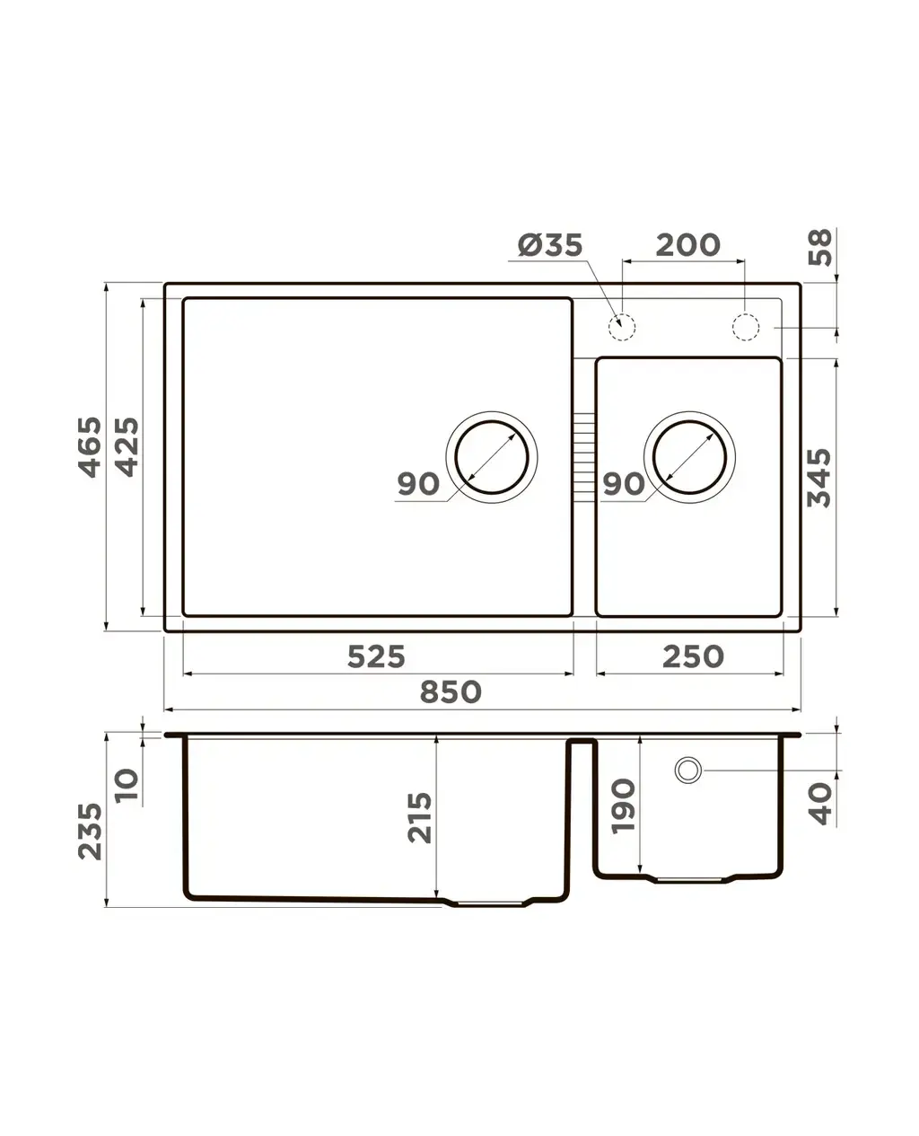 Размер мойки,мм