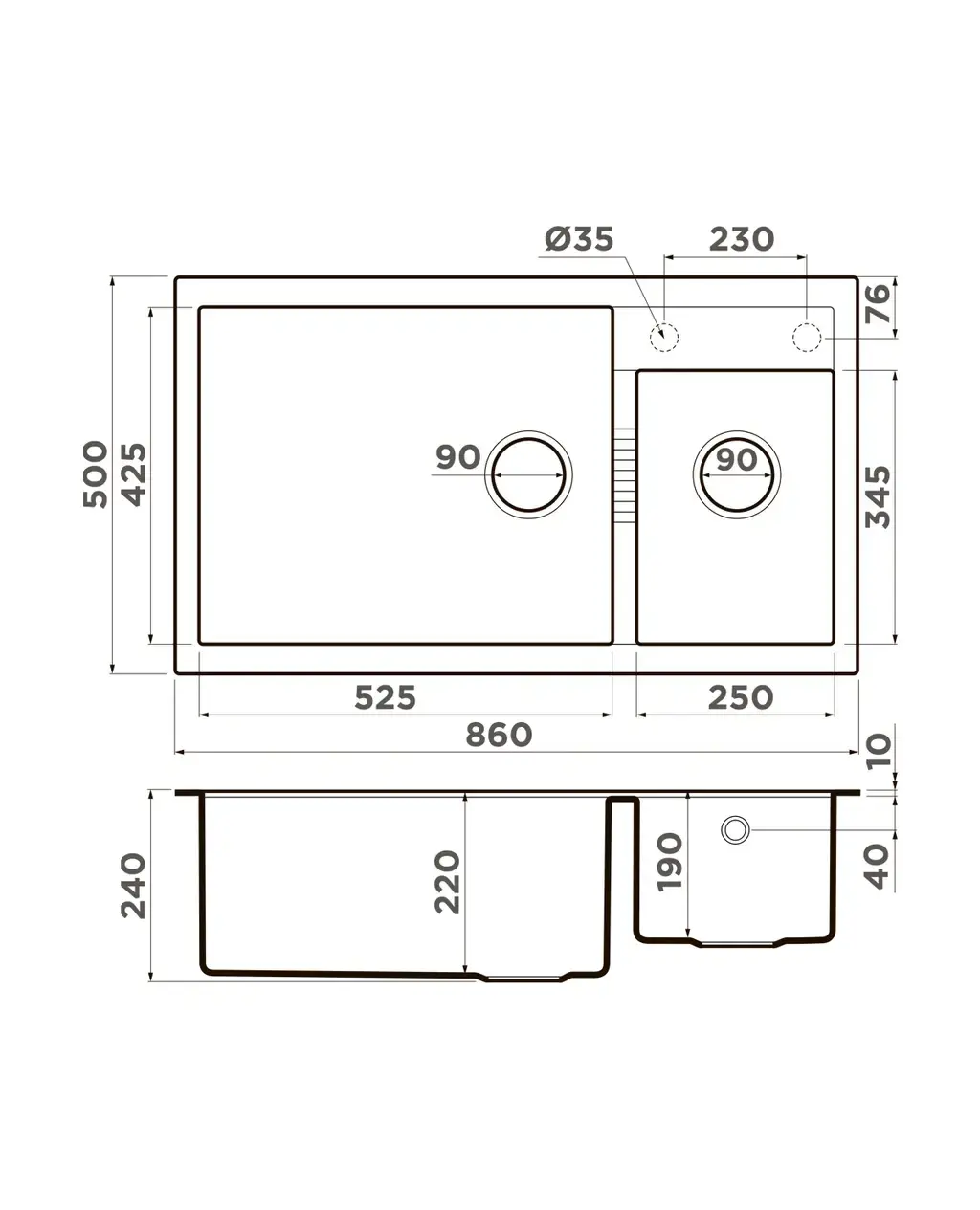 БрендOmoikiri МатериалTetogranit Размер мойки,мм860х500 Вес нетто16,6 Размер чаши,мм525x425 Размер монтажной тумбы,см90 см Тип монтажаНакладной Высота упаковки300 Длина упаковки950 Ширина упаковки580 ЦветЧерный Гарантия 15 лет