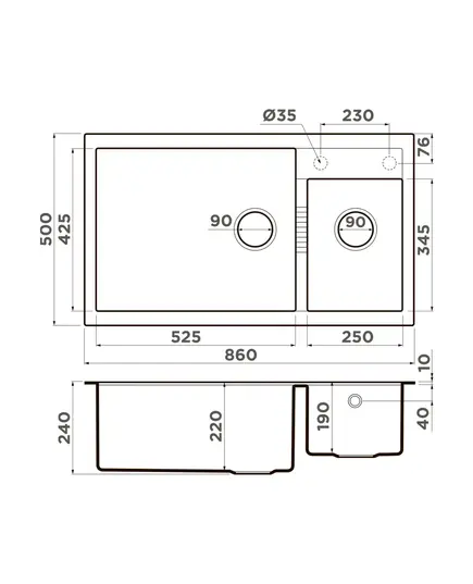 • Благодаря этому элементу мойка обретает устойчивость к воздействию различных кислот и щелочей, что гарантирует ее неизменный внешний вид.