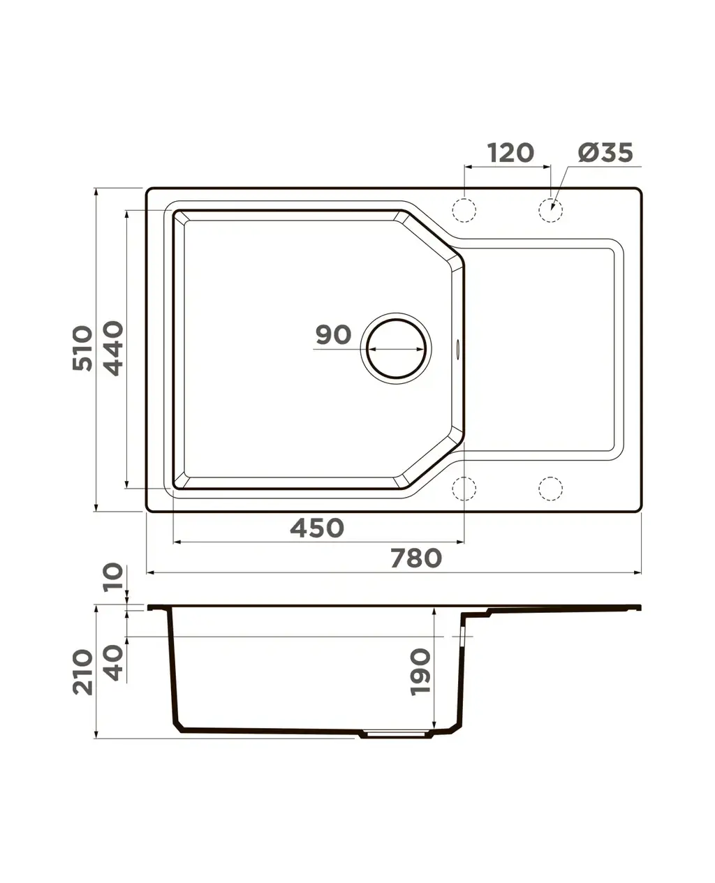 Размер мойки,мм