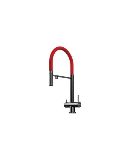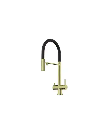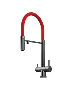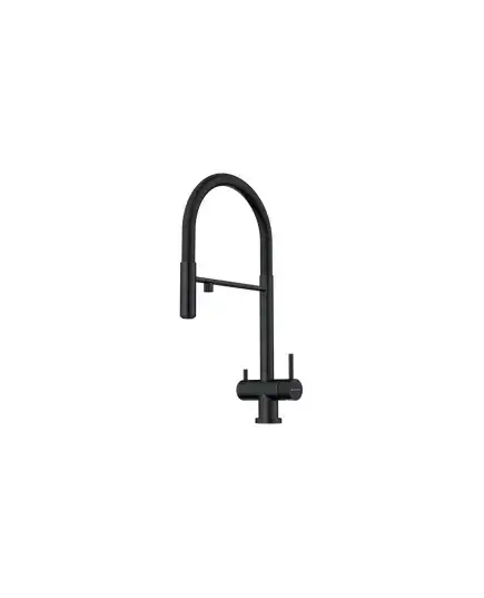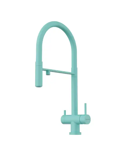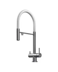 Уникальность смесителя заключается в том, что это единственный на рынке кухонный смеситель который сочетает в себе возможность подключения фильтра для питьевой воды и подвижный излив для основной (хол. и гор.) воды, с помощью которого струю можно направлять абсолютно в любую сторону.