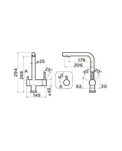 Левый рычаг - фильт. вода/ Правый - гор.| хол. вода.