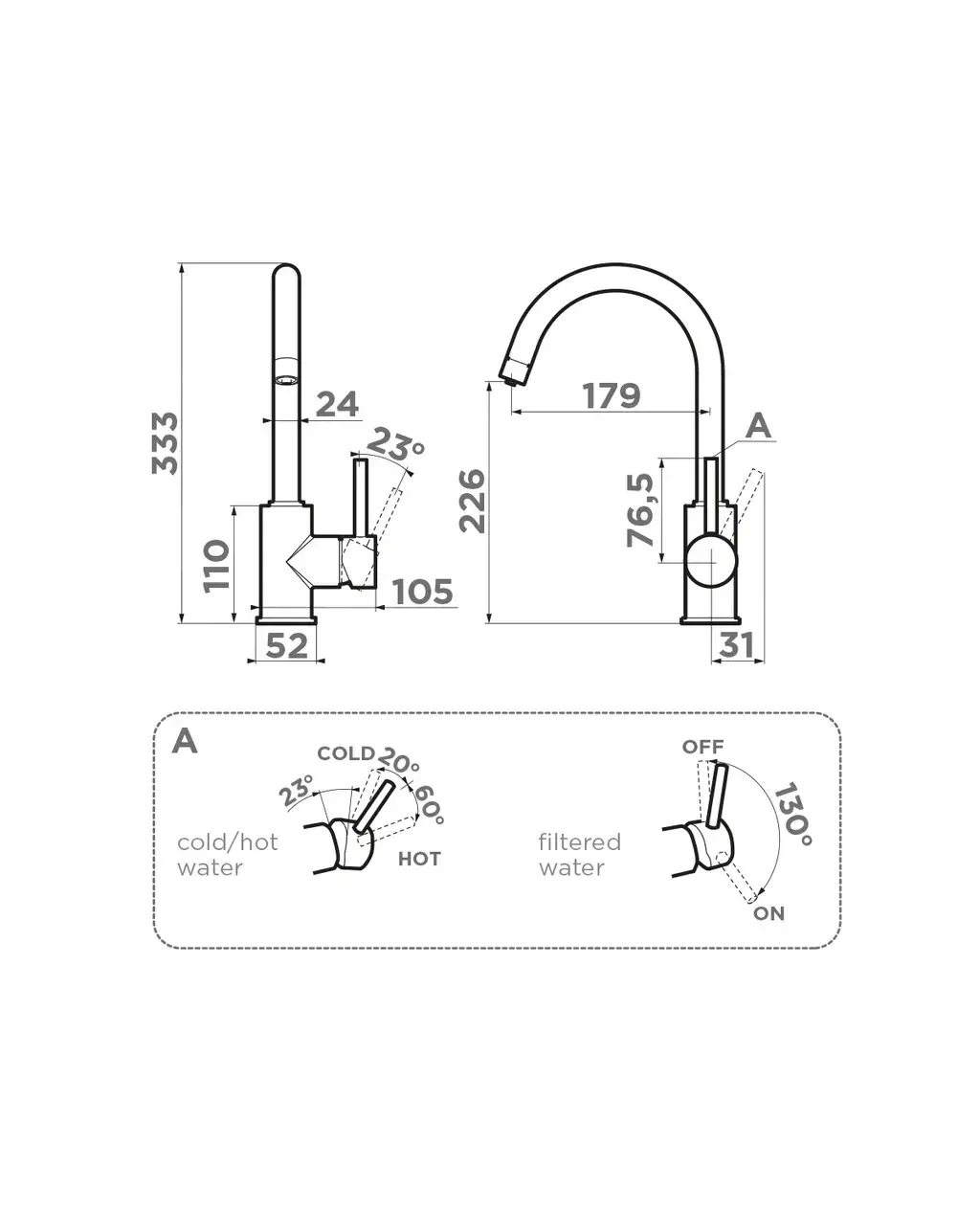 • Совет по уходу: После испарения воды на поверхности смесителя, образуются следы.