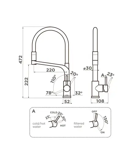 - Совет по уходу: После испарения воды на поверхности смесителя, образуются следы.